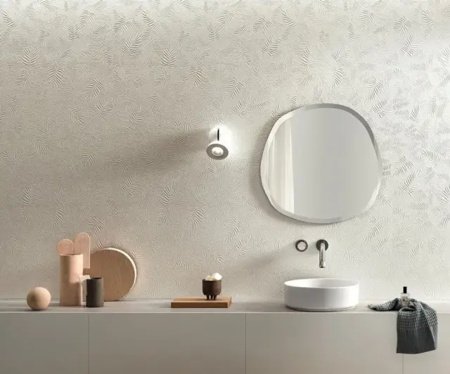 3D Wall Carve Leaf Ivory 40x80