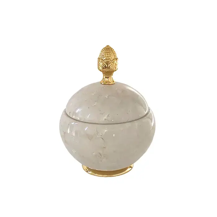 3SC Elegance Баночка универсальная, D=15/h18 см, с крышкой, настольная, цвет: мрамор botticino/золото 24к. Lucido