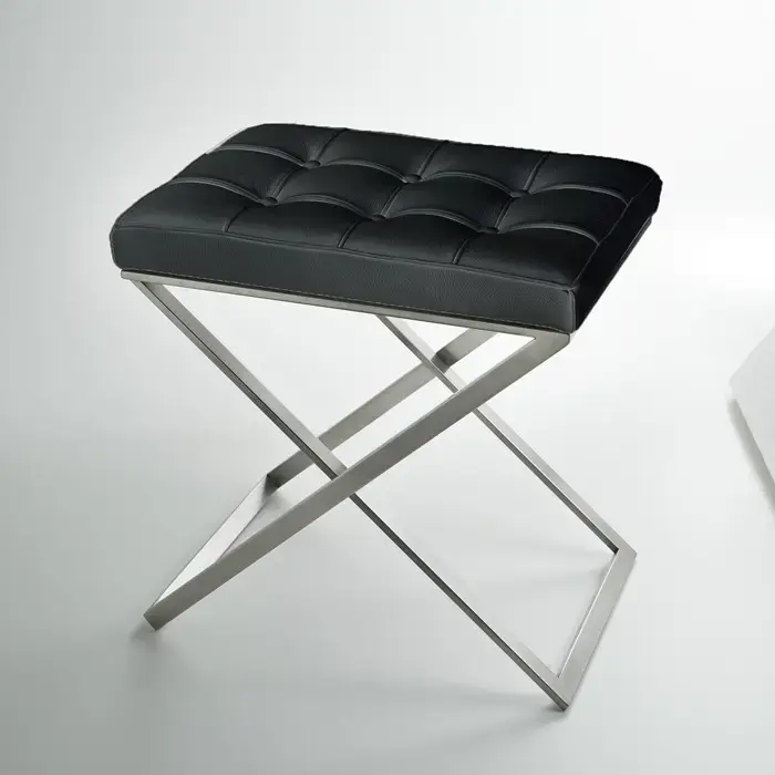 3SC Lino&Lone Стул с сиденьем из кожи со стежкой 50хh50х36 см, цвет: черная кожа/никель сатинированный матовый