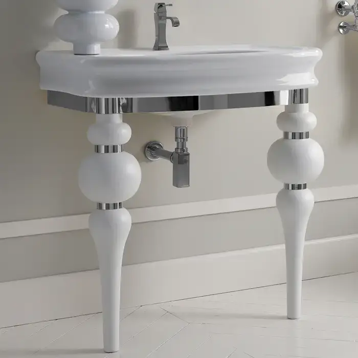 3SC VIA VENETO Консоль с раковиной LANTE 90 см,цвет белый глянец, в комплекте с сифоном, напольная, цвет консоли белый матовый/хром