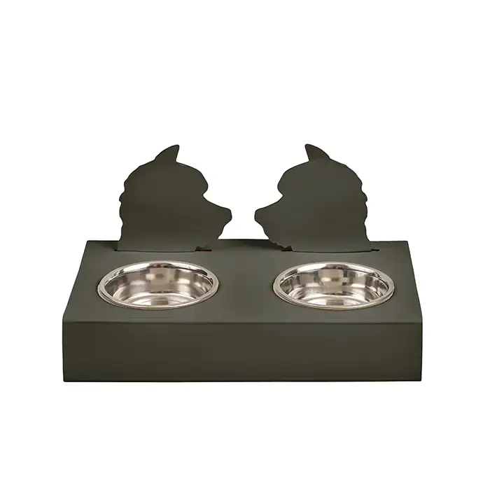 ADJ Подставка с мисками Dog, хром, 40x22xH7.5 см., цвет: оливковый/горчичный
