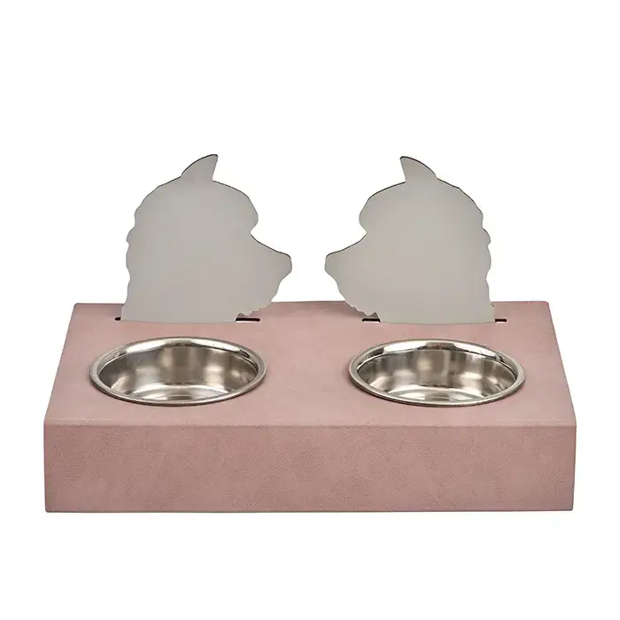 ADJ Подставка с мисками Dog, хром, 40x22xH7.5 см., цвет: пепельная роза/устричный