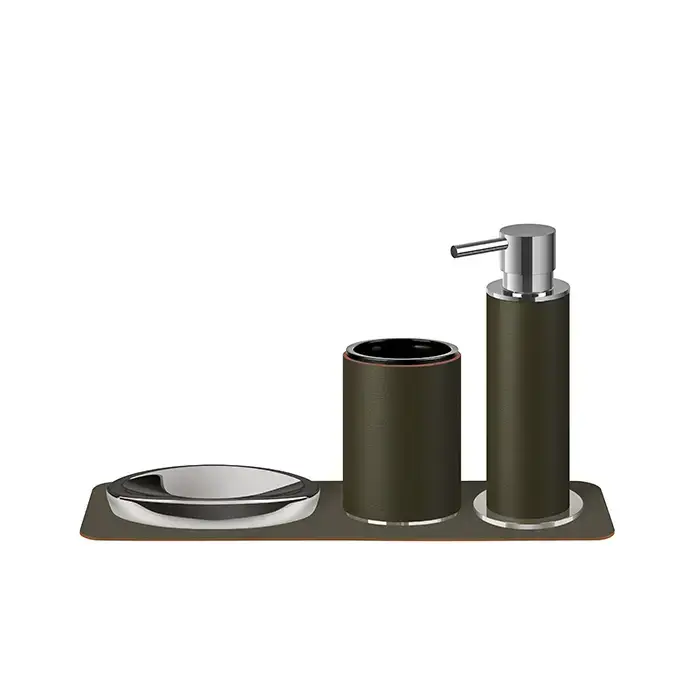 ADJ Стакан для зубных щеток, D7xH10 см., цвет:chrome/оливковый