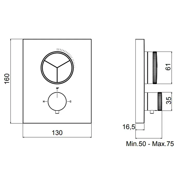 Almar Core Смеситель для душа, встраиваемый, термостатический, цвет: черный металл брашированный PVD