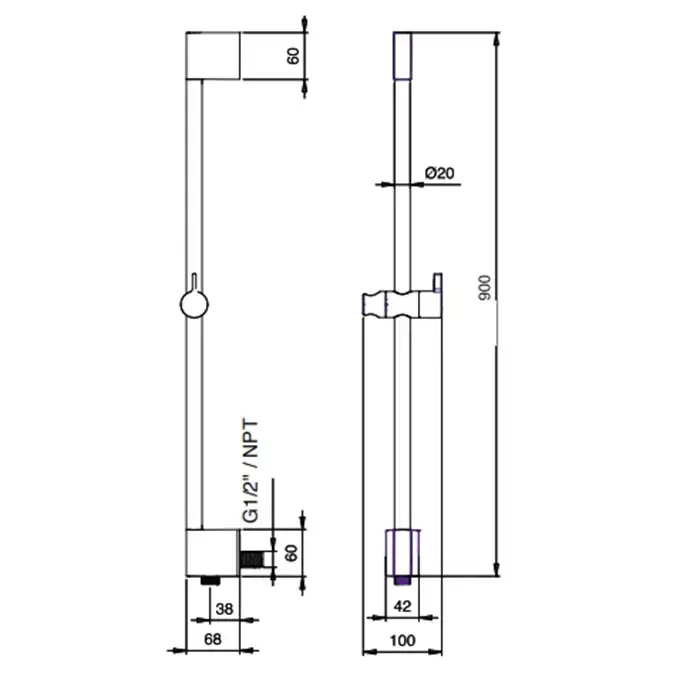 Almar Cube Душевая штанга, квадратная 70см, латунь/ABS, цвте: хром