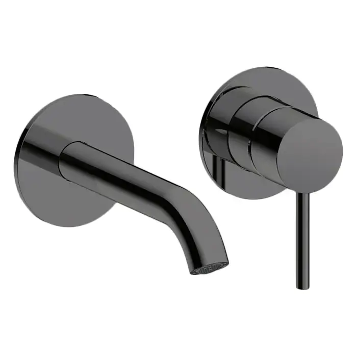 ALMAR Смеситель однорычажный для раковины на 2 отверстия из стены, излив 160-185 мм, внешняя часть, цвет черный металл брашированный PVD
