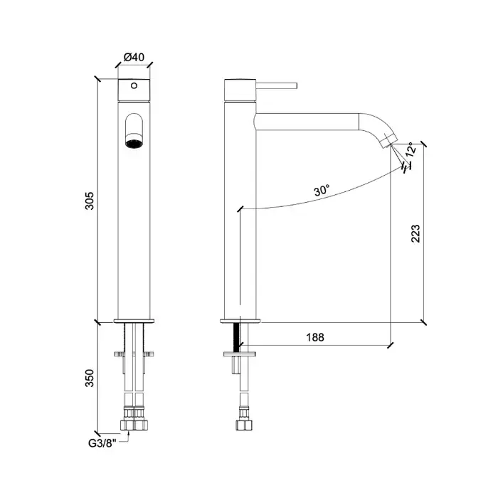 ALMAR Смеситель для раковины на 1 отверстие, высокий h305 мм, излив 188 мм, без донного клапана, цвет никель брашированный