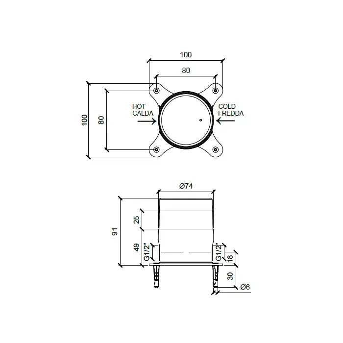 QuadroDesign Универсальная IN050 Встраиваемая часть смесителя термостатического из стены с 3-мя запорными вентилями