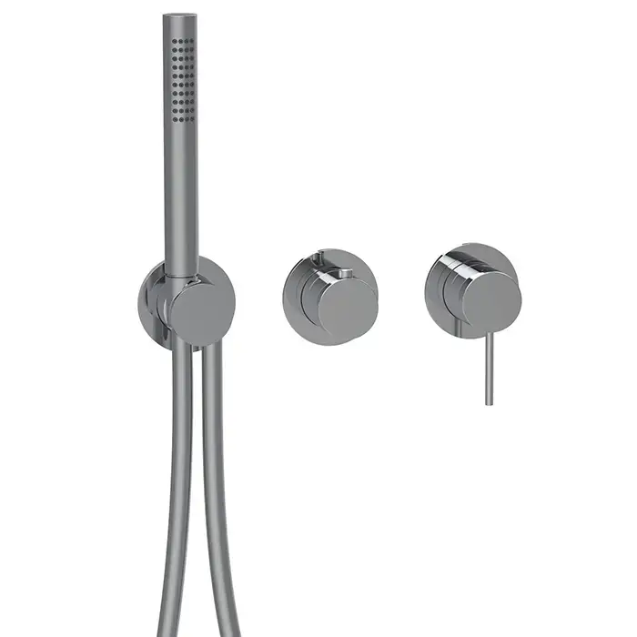 Almar Modular Смеситель для душа, встраиваемый, внешняя часть, круглые розетка, с перекл. на 2 положения, с ручным душем и шлангом, цвет: Stainless Steel AISI316
