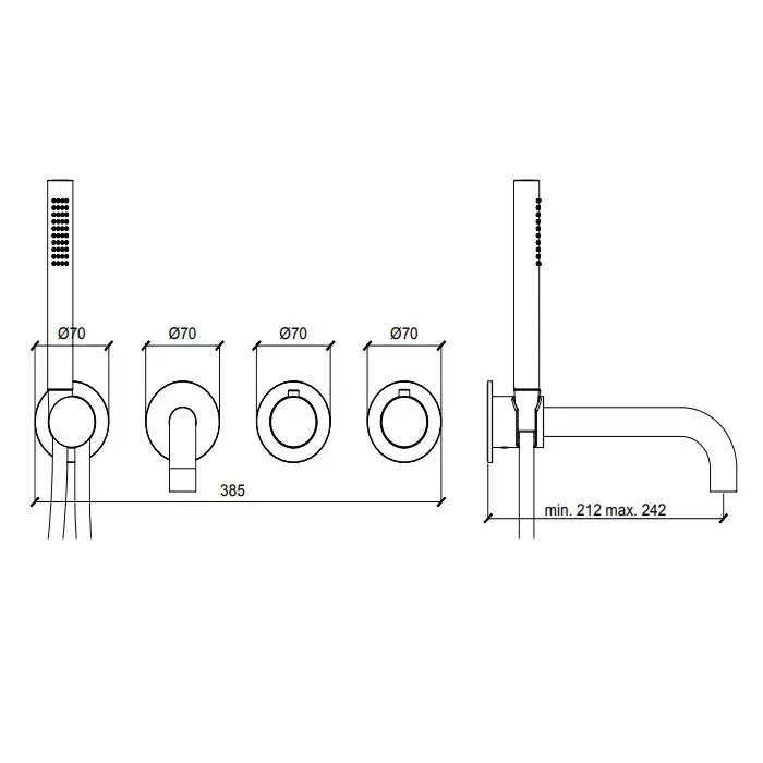 Almar Modular Смеситель для ванны, настенный, термостатический, с изливом и ручным душем, цвет: Black Absolute Brushed PVD