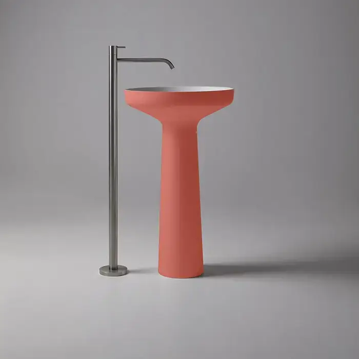 ANTONIO LUPI AGO Раковина напольная Ø500х850 мм., слив в пол, с сифоном, гибким шлангом и донным клапаном, Flumood, внешний цвет Bambola, внутри белая