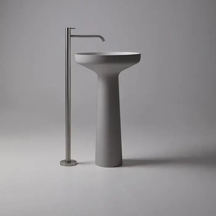 ANTONIO LUPI AGO Раковина напольная Ø500х850 мм., слив в пол, с сифоном, гибким шлангом и донным клапаном, Flumood, внешний цвет Cemento, внутри белая