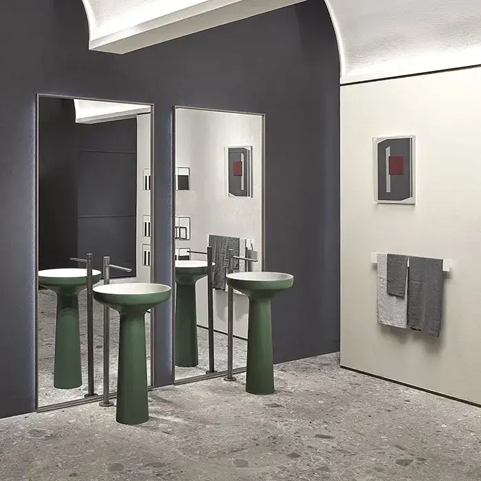 Antonio Lupi Ago Раковина 50х85 см, без отв., напольная, слив в пол, с сифоном, гибким шлангом и донным клапан, Flumood, внешний цвет: Flora, внутри белый