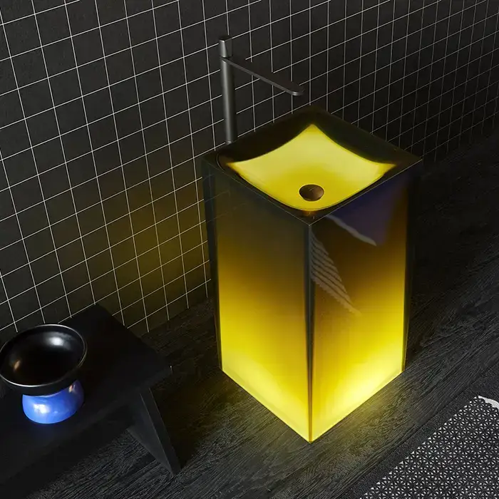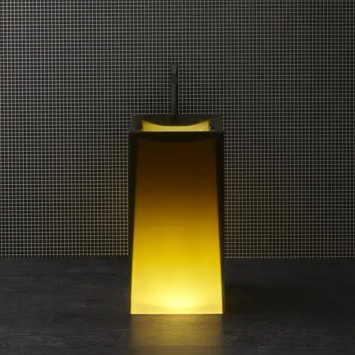 Antonio Lupi Aura Раковина 45х45х85 см, без отв., напольная, слив в пол, с дон. клапан, сифоном и трубой слива, Cristalmood, цвет: Ocra