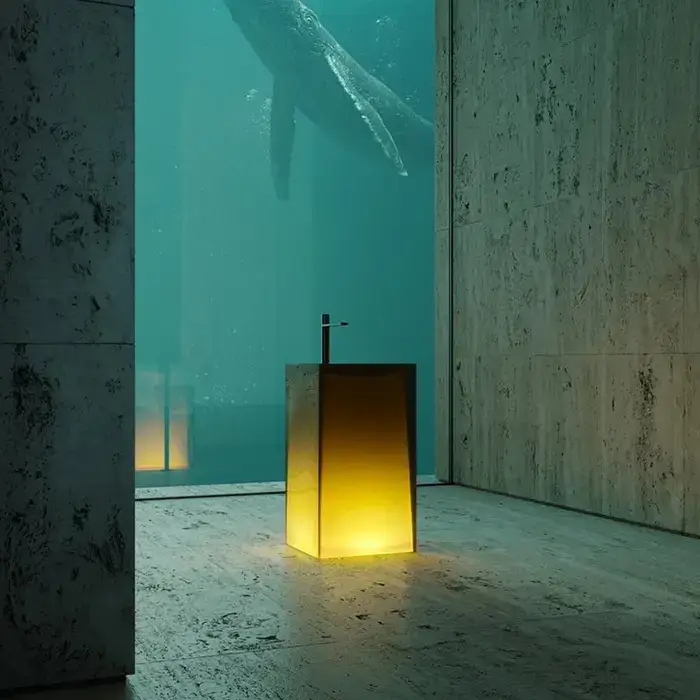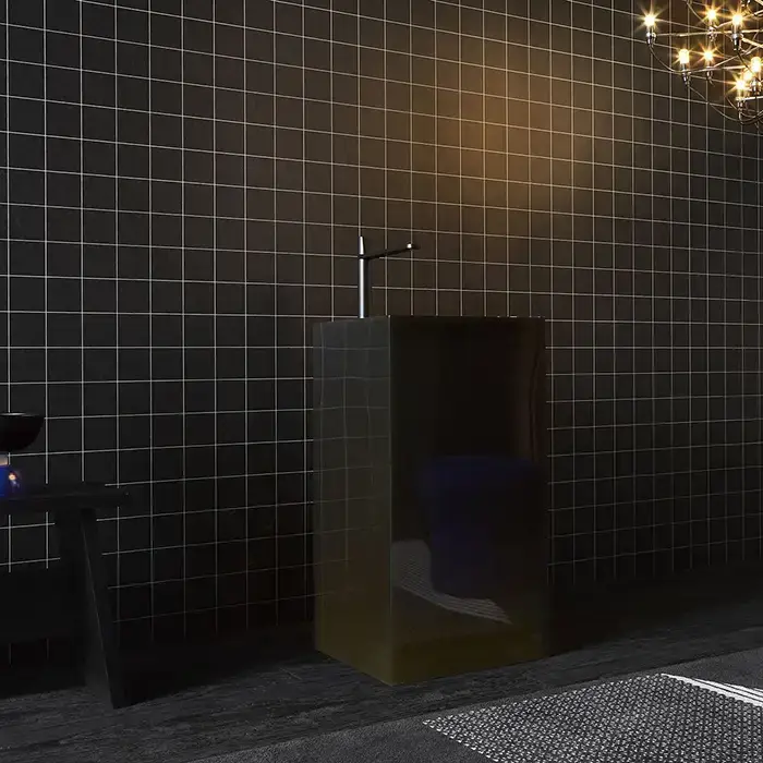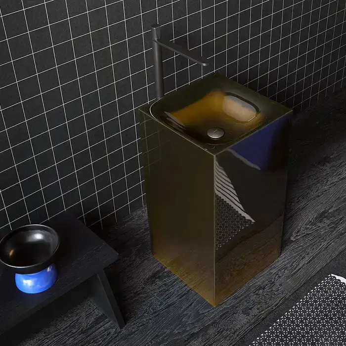 Antonio Lupi Aura Раковина 45х45х85 см, без отв., напольная, слив в пол, с дон. клапан, сифоном и трубой слива, Cristalmood, цвет: Oleo