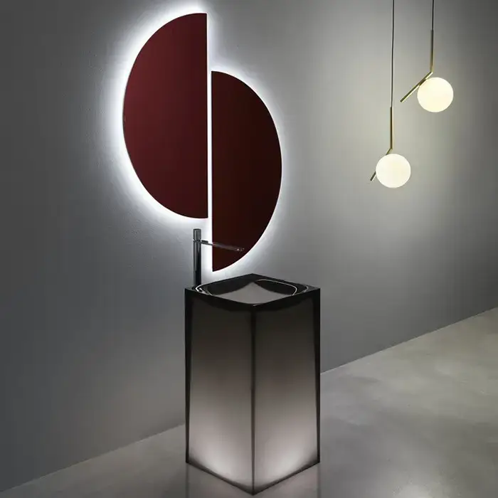 Antonio Lupi Aura Раковина 45х45х85 см, без отв., напольная, слив в пол, с дон. клапан, сифоном и трубой слива, Cristalmood, цвет: Bottiglia