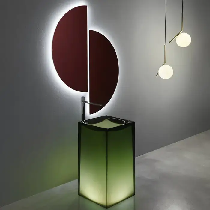 Antonio Lupi Aura Раковина 45х45х85 см, без отв., напольная, слив в пол, с дон. клапан, сифоном и трубой слива, Cristalmood, цвет: Bottiglia