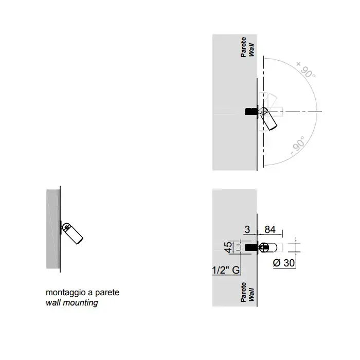 ANTONIO LUPI AZIMUT Верхний душ Ø30 мм., настенный или потолочный, поворотный, цвет графит