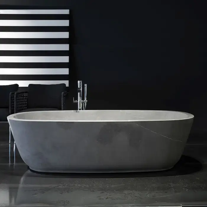 Antonio Lupi Baia Ванна отдельностоящая 185х90х50 см с д/клапаном (хром), без перелива, без сифона, мат-л : нат.камень, цвет: Pietra Stone Grey