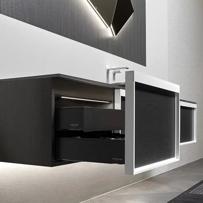 ANTONIO LUPI BEMADE Тумба 540х540х375 мм., подвесная, 1 ящик, внутренняя подсветка, боковины Skin cenere, рама белый матовый, фронт Rovere Ardesia