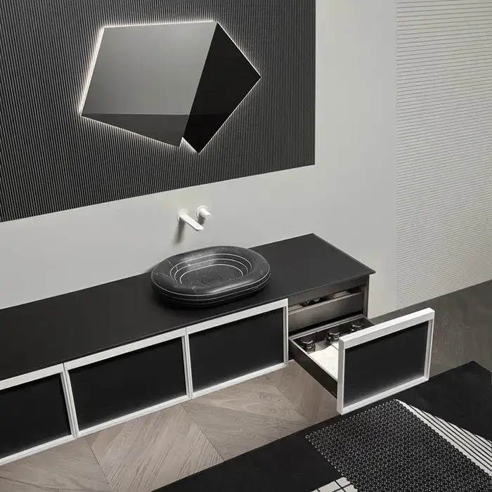 ANTONIO LUPI BEMADE Тумба под раковину 540х540х375 мм., 1 ящик, внутренняя подсветка, боковины Skin cenere, рама белый матовый, фронт Rovere ardesia