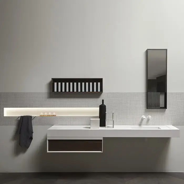 ANTONIO LUPI BEMADE Тумба 720х470х250мм, подвесная, 1 ящик SLIM, внутренняя подсветка, боковины белый матовый, рама белый матовый, фронт Rovere thermo