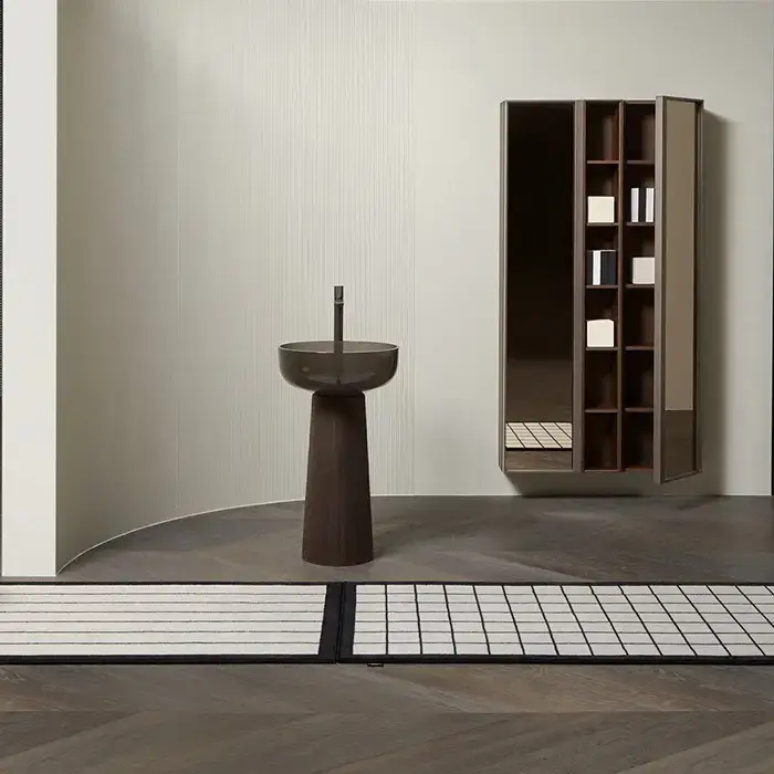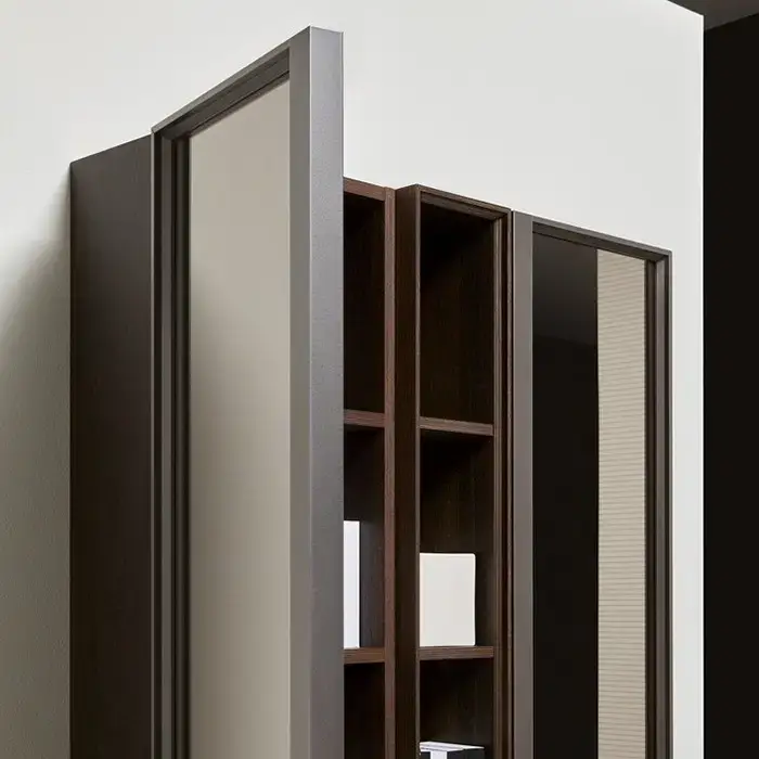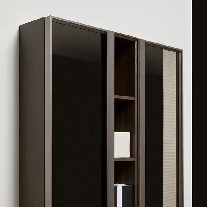 ANTONIO LUPI BEMADE Пенал 360х216х1750мм, подвесной, правый, 1 дверца, 5 полок, боков справа Rovere thermo, рама Zirconio, фронт стекло Acidato bronzo