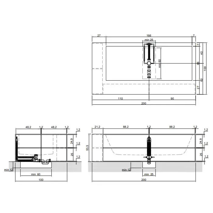 Antonio Lupi Biblio Ванна прямоугольная отдельностоящая, 200х100х53.5см, цвет: белый