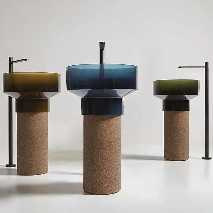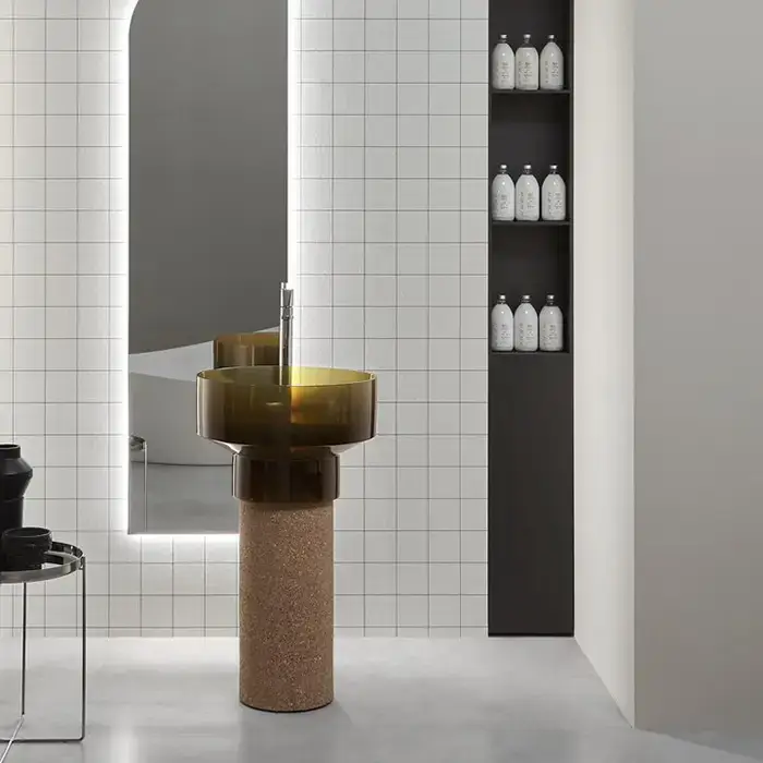 Antonio Lupi Borghi Раковина 50х90 см, без отв., напольная, слив в пол, с донным клапаном и сифоном, пьедестал из пробки Natural, Cristalmood, цвет: Oleo
