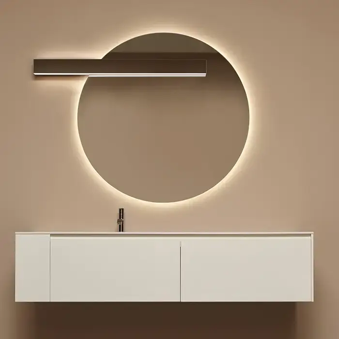 Antonio Lupi Circus Зеркало Ø108cм., с белой светодиодной подсветкой, с блестящей кромкой, с левосторонним светильником LUCENTE, на раме
