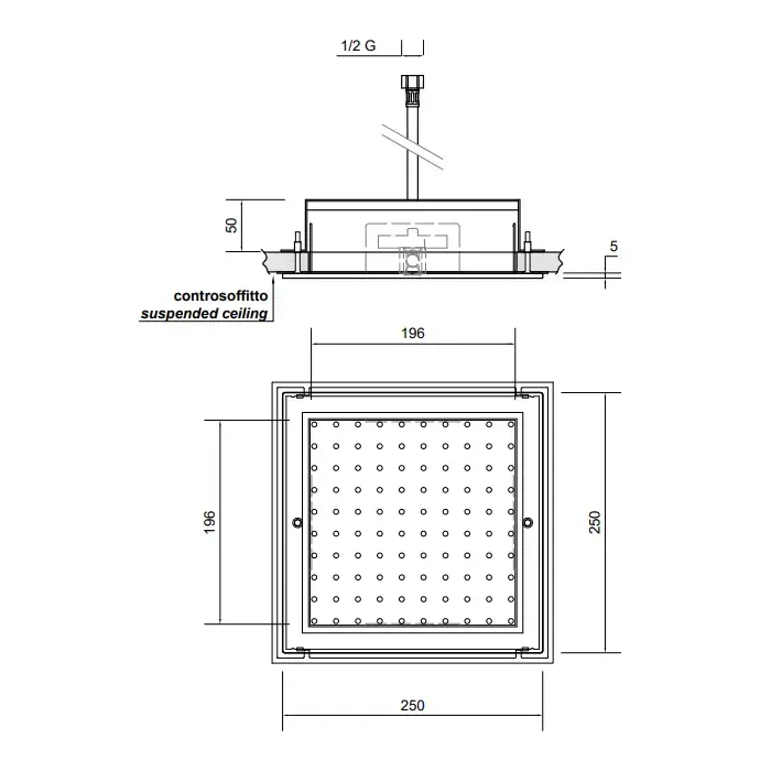 ANTONIO LUPI LAMATTONELLA Верхний душ 250х250х5 мм., встраиваемый в потолок, полированная нержавеющая сталь