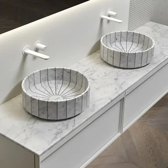 ANTONIO LUPI FONTE Раковина Ø450х150 мм., для установки на столешницу, в комплекте с донным клапаном, мрамор Carrara