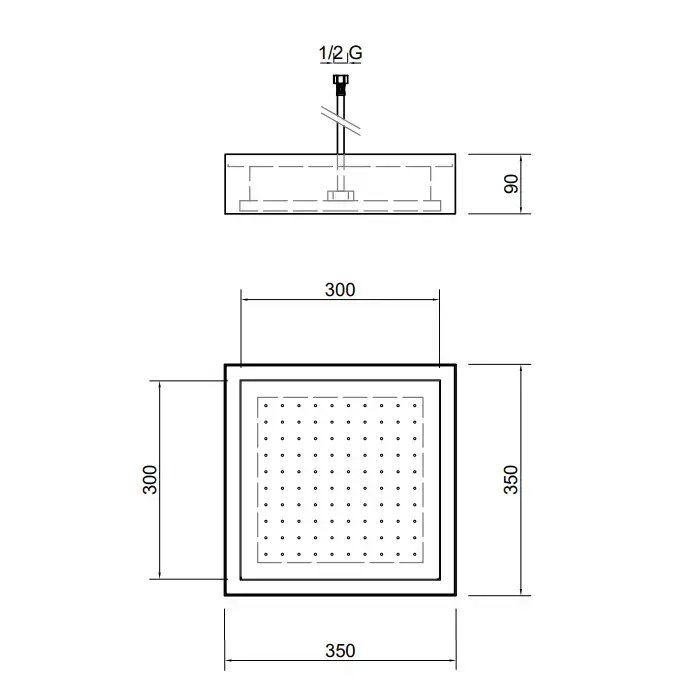 ANTONIO LUPI FUORIMETEO SLIM Верхний душ 350х350х90 мм., потолочный монтаж, рама белая, лейка белая