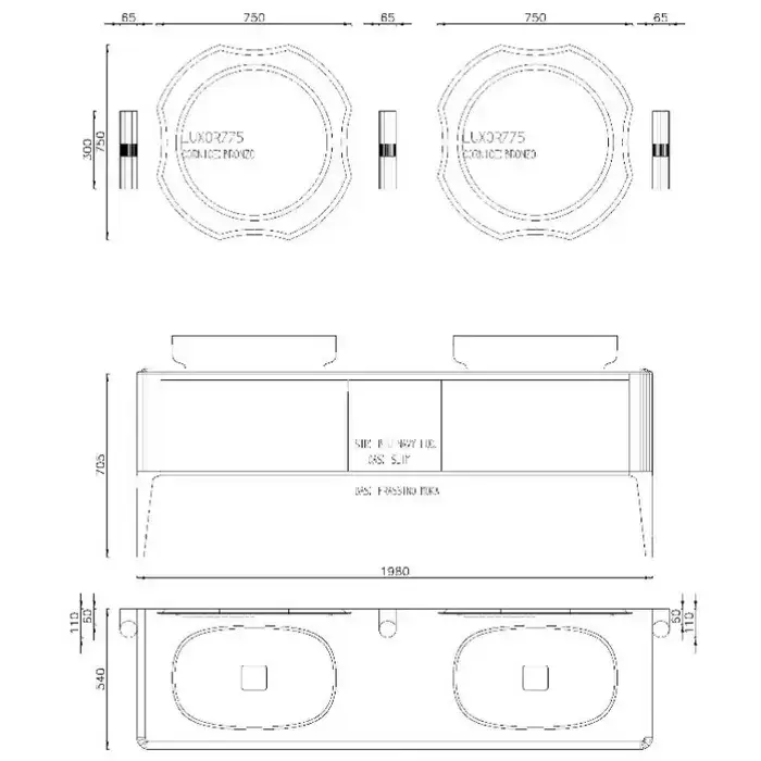 ANTONIO LUPI IL BAGNO Структура 1980х540х705 мм., из цельного дерева Frassino moka, с боковинами цвет Blu navy lucido