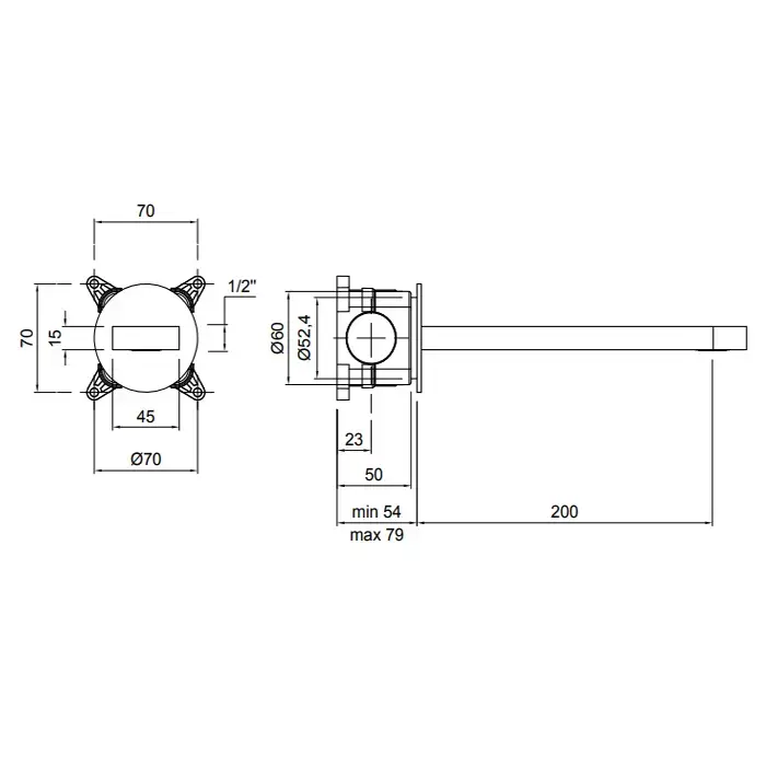 ANTONIO LUPI INDIGO Излив для ванны 200 мм., настенный, в комплекте с встраиваемой частью, цвет графит