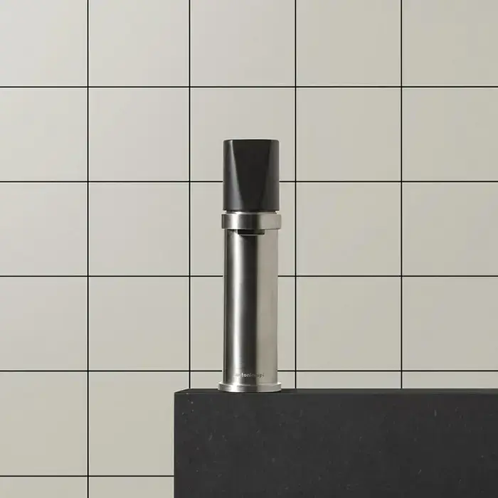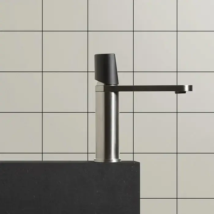 ANTONIO LUPI INDIGO Смеситель для раковины на 1 отверстие, излив 165 мм., ручкая черная матовая, цвет: сатинированная сталь