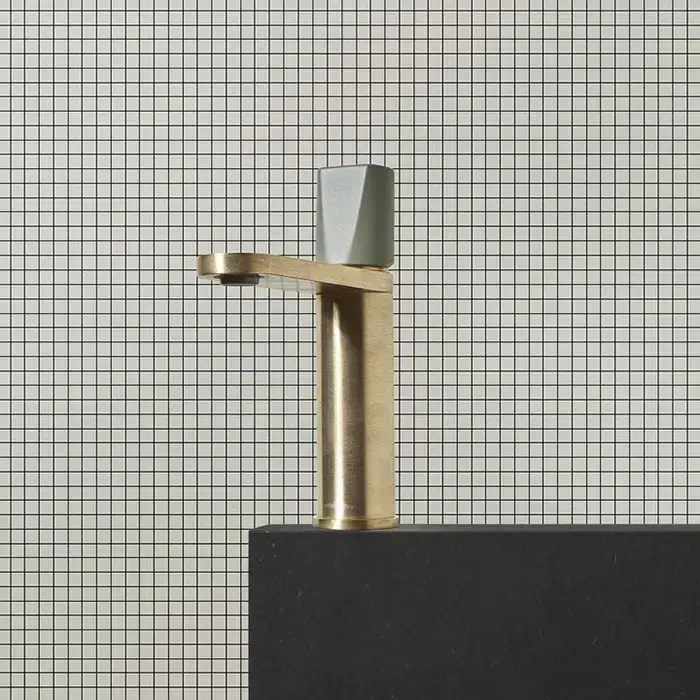 ANTONIO LUPI INDIGO Смеситель для раковины на 1 отверстие, излив 165 мм., ручка матовая Lambretta, цвет сатинированная натуральная латунь
