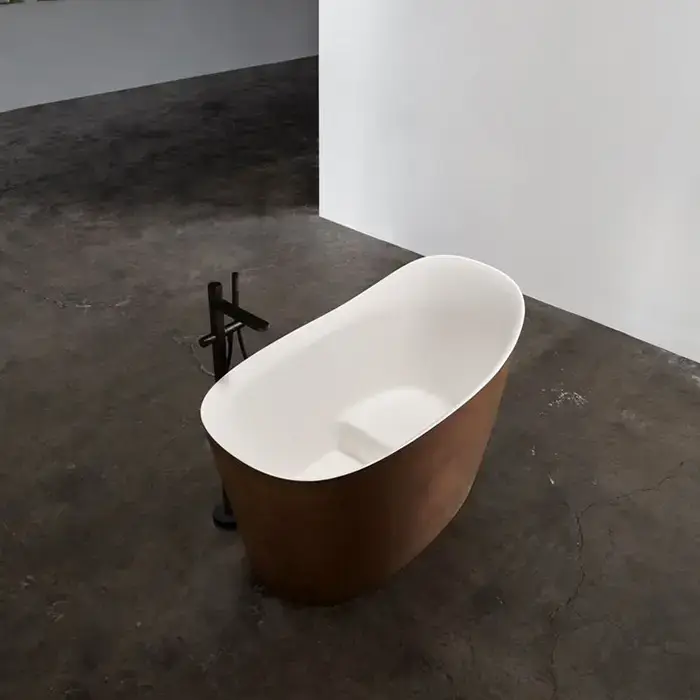 ANTONIO LUPI MASTELLO Ванна отдельностоящая 1350х750х870 мм, с нажимным донным клапаном, сифоном и гибким шлангом, Flumood, внешняя отделка Rame