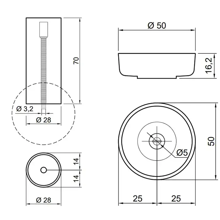 Antonio Lupi Opale Раковина накладная, Ø50см, без отв под смес, без перелива, с д/клапаном (хром), мат-л: нат.камень, цвет: Nero Marquinia