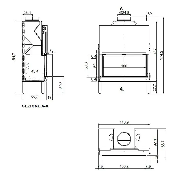 Antonio Lupi Teka Камин 48.6х40х81см, встраиваемый в стену, на биоэт, корп из стали, с противопожарн стеклом и горелкой LAFLACA, покрыт черной краской