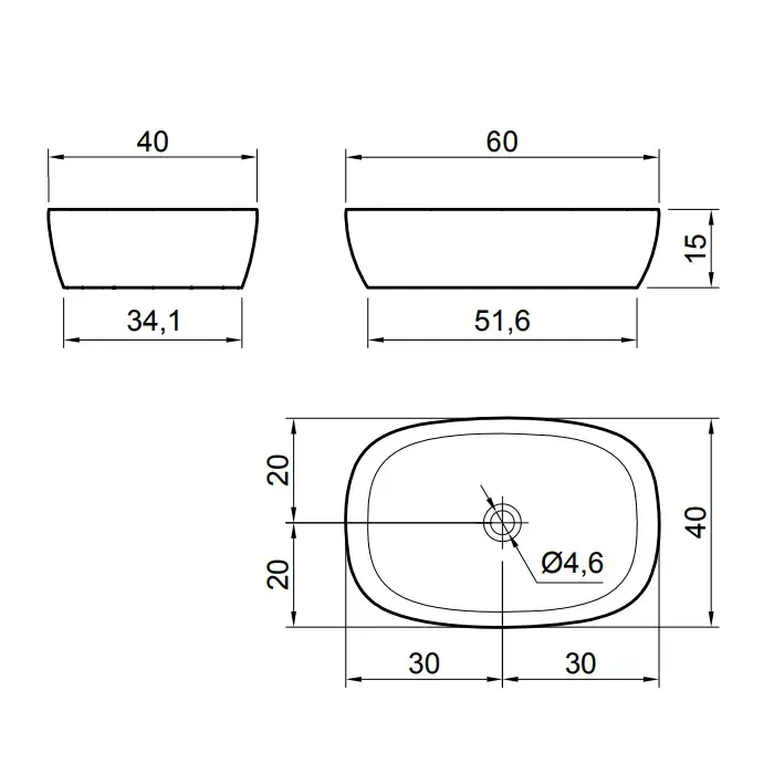 ANTONIO LUPI SENSO Раковина 600х400х150 мм., для установки на столешницу, с самотечным донным клапаном, Flumood, цвет белый матовый