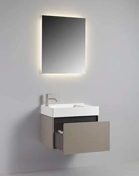 Antonio Lupi Simplo Комплект подвесной мебели 63х42хh37,5см, с 1 ящиком, цвет: Havana goffrato с раковиной из материала Flumood белой