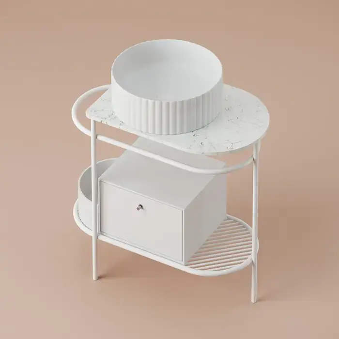 Artceram VOGUE Металическая структура Ø44хh72,5см с раковиной Millerighe без отв. под смеситель, с сетчатой полочкой, напольный, цвет: белый матовый