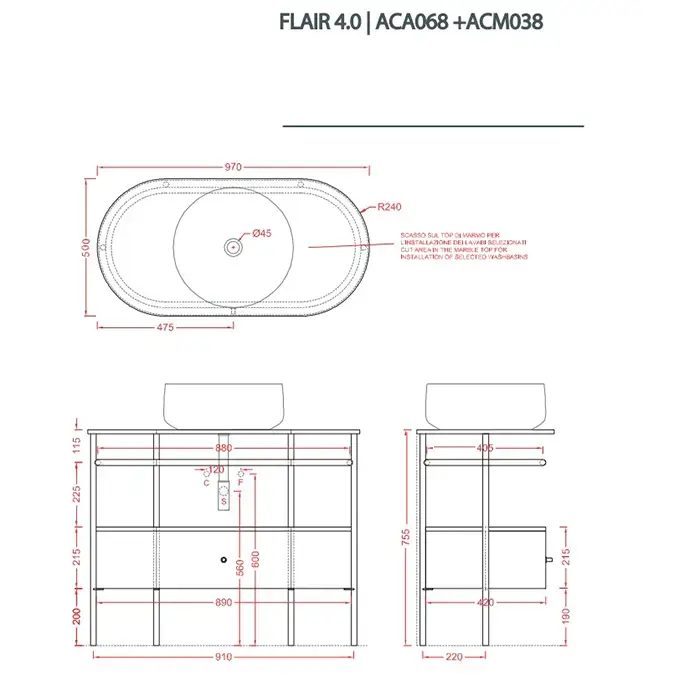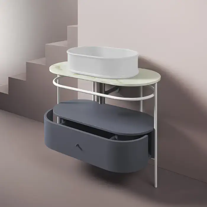Artceram Flair 4.0 Консоль металлическая с раковиной 95x48хh75см., напольная, с выдвижным ящиком и мраморной столешницей, цвет: белый матовый