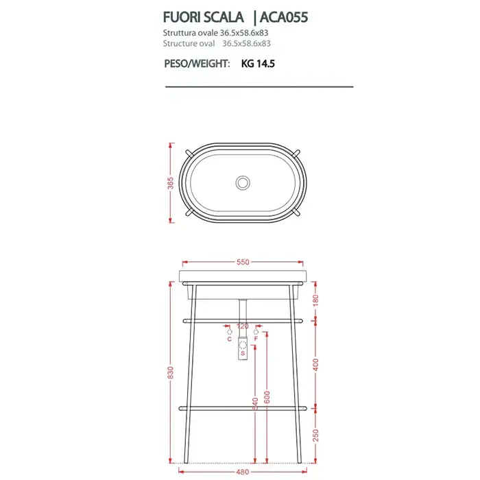 Artceram FUORI SCALA Металическая структура 36.5x58.6хh83см с раковиной без отв под смеситель, Fuori Scala ovale 59, напольная, цвет: черный матовый/белый матовый
