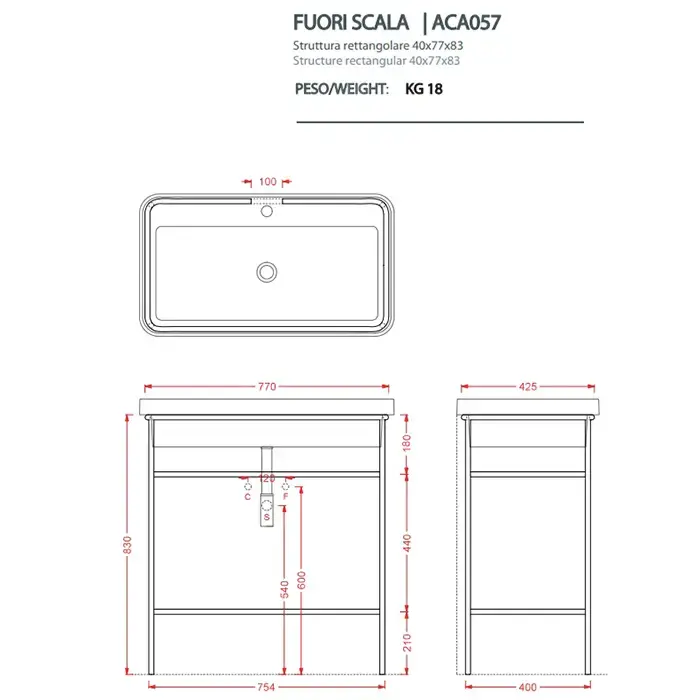 Artceram FUORI SCALA Металическая структура 40x77хh83см для раковины Fuori Scala rettangolare 81, цвет: черный матовый (без полки)