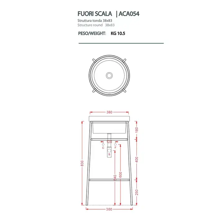 Artceram FUORI SCALA Металическая структура Ø38хh83см с раковиной без отв под смеситель, Fuori Scala Ø41, напольная, цвет: черный матовый/белый матовый