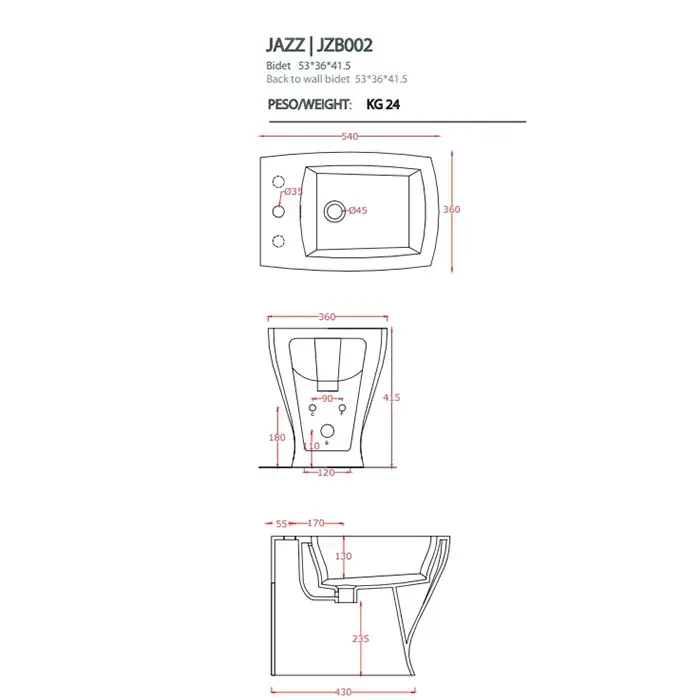 Artceram JAZZ Биде подвесное 54x36см c креплением, с 1 отв под смеситель .цвет: белый