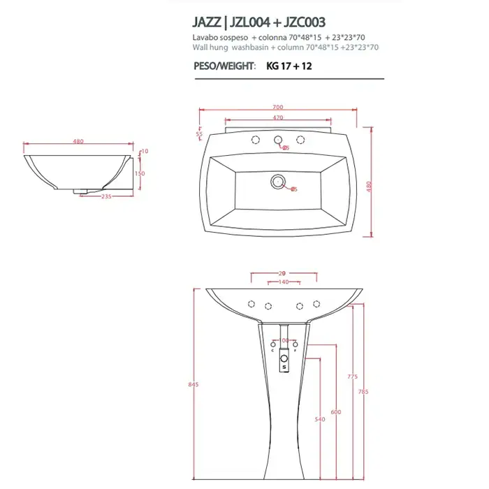 Artceram Jolie Раковина 50см., на пьедестале, пристенный монтаж, цвет: белый глянцевый