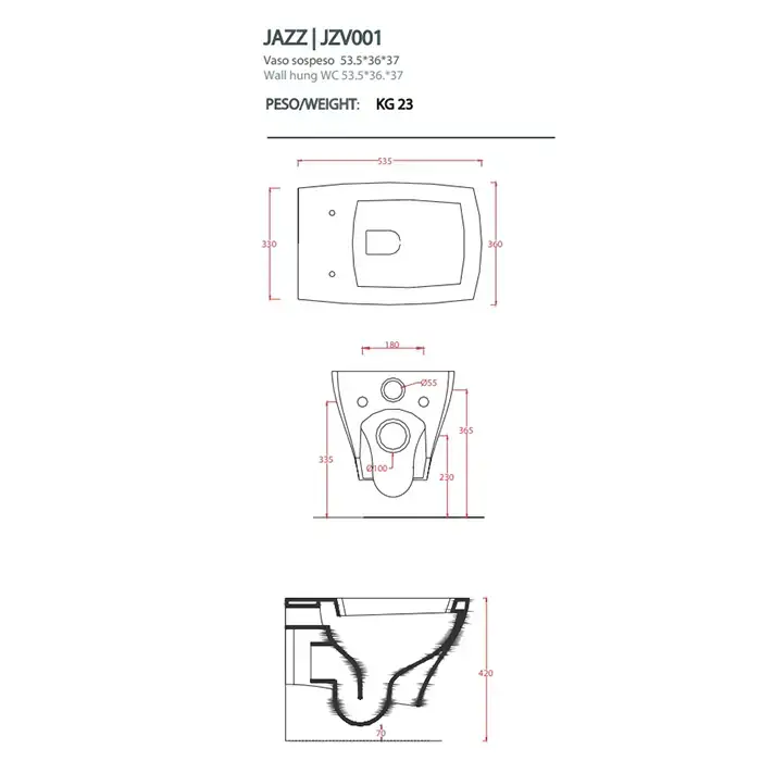 Artceram JAZZ Унитаз подвесной 54x36см c креплением, цвет: белый